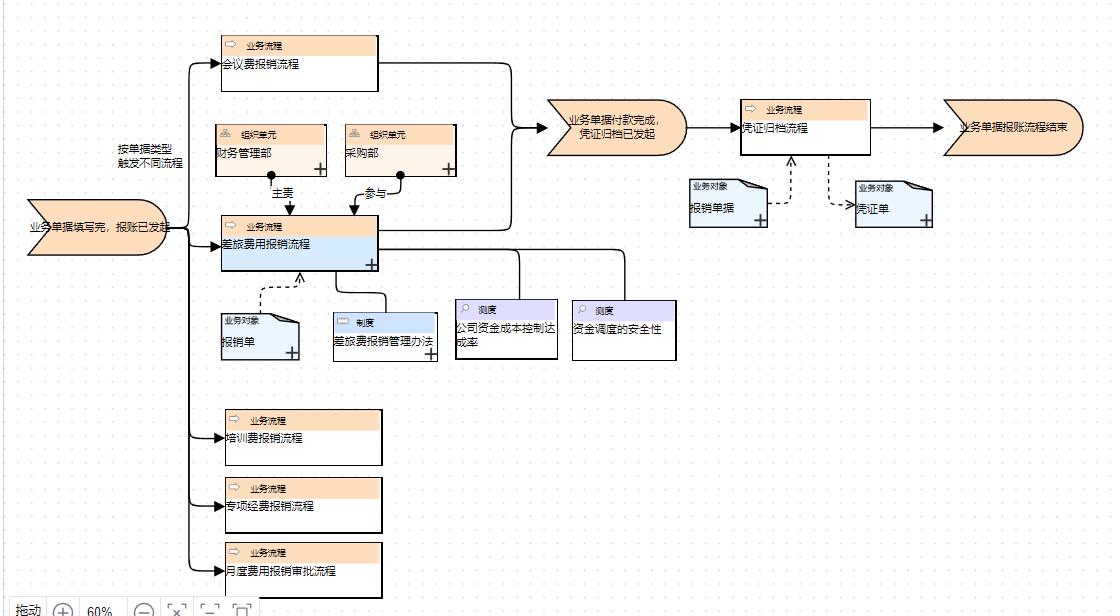 | 引言 在当今这个信息爆炸的时代,组织内部的各种流程变得日益复杂。如何有效地管理和优化这些流程,成为了组织面临的重要挑战。流程显性化作为一种有效的管理方式,通过明确、可见和可追踪化的手段,为组织提供了一种全新的解决方案。本文将从流程显性化优势和实际应用案例两个方面,探讨流程显性化的重要性和实际效果。 优势 1. 透明度提升:流程显性化将组织内部的各种流程变得透明化,使得员工可以快速了解各自职责和任务。同时显性化流程便于收集反馈,组织可基于某一价值流从流程池中选取某一价值流进行流程,形成“一张图”,推动持续改进循环,使流程不断完善和进化。 2.促进沟通:通过“流程”建立组织的一套话语体系,员工和管理层不仅可以清晰地了解看到流程,并可以在多个流程中快速找到决策路径。 3. 效率提升:通过明确流程、标准化操作和监控流程执行情况,流程显性化可以更好地发现和解决流程中的瓶颈和问题。这种有针对性的优化措施,能够显著提高组织的运作效率,降低不必要的成本支出。 4. 问题定位:流程显性化使得组织能够及时发现流程中的问题和风险点,从而及时进行调整和优化。这种前瞻性的管理方式,有助于降低组织内部的错误率和风险,保障组织的稳健发展。 5. 知识管理:将流程显性化可以促进知识的积累和共享,有利于知识管理和传承。通过将流程文档化、标准化,组织可以更好地保留和传承宝贵的经验知识,为组织的长远发展奠定坚实基础。 6. 促进标准化:流程显性化有利于制定和执行标准操作程序,确保工作质量和一致性。 应用案例 制造业中的生产流程显性化 以汽车制造业为例,通过工艺图、标准操作流程(SOP)和生产线监控系统,实现生产流程的显性化。这种管理方式使得生产过程中的每一个环节都变得清晰可见,从而提高了生产效率、降低了质量风险。同时,标准化的操作流程还有助于提高员工的工作熟练度,减少操作失误。 金融业中的贷款审批流程显性化 银行通过建立贷款审批系统,将审批流程清晰化,包括客户信息收集、审批条件、审批流程等。这种显性化的管理方式使得贷款审批过程更加透明、公正,提高了审批效率,降低了风险。同时,通过系统化的数据管理,银行还能够更好地分析客户信用状况,为风险控制提供有力支持。 IT行业中的项目管理流程显性化 软件开发公司通过项目管理工具和流程规范化,实现项目进度、质量、成本等方面的显性化管理。这种管理方式使得项目团队能够实时掌握项目状况,及时发现和解决潜在问题,从而提高研发效率、降低项目风险。同时,通过显性化的项目管理流程,公司还能够更好地协调各方资源,确保项目的顺利推进。 演示案例 接下来,以差旅费用报销流程的显性化为例进行详细说明。 在推进差旅费用报销流程显性化的过程中,财务人员(流程主责)能够轻易发现报销流程中的冗余动作,并着手进行流程的优化和改进,从而减少诸如人工审核、汇总等重复性工作,提升流程的管理效率。 通过提供更直观、显性化的差旅费用报销流程,报销人员和财务人员都可以清晰地了解报销的工作流程和决策路径,查看报销流程每一个环节所需的模板、软件系统等,从而减少报销流程执行中的沟通成本。报销流程透明度的提升可以有效促进报销人员与财务人员之间的沟通与协作,从而提高报销业务的执行效率、报销体验和满意度。 通过在差旅费用报销流程中融入报销管理办法、凭证管理办法等合规要素,能够加强报销流程的合规性管理,将一本本文件中的报销、费用、差旅等要求在流程中集中管理并呈现,从而提高报销流程的透明度、准确性和合规性。 通过实际应用案例的展示,我们也能够看到流程显性化在实际应用中所取得的显著成果。流程显性化作为当前管理升级的重要手段,利用建模工具可以加强流程显性化的实施,这不仅能提高显性化和透明度,还能帮助企业通过模型追溯分析迅速定位问题,并可作为流程到数据、流程到软件的强有力的输入。数孪模型也提供了大量案例欢迎大家共同探讨。 |